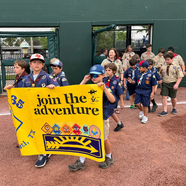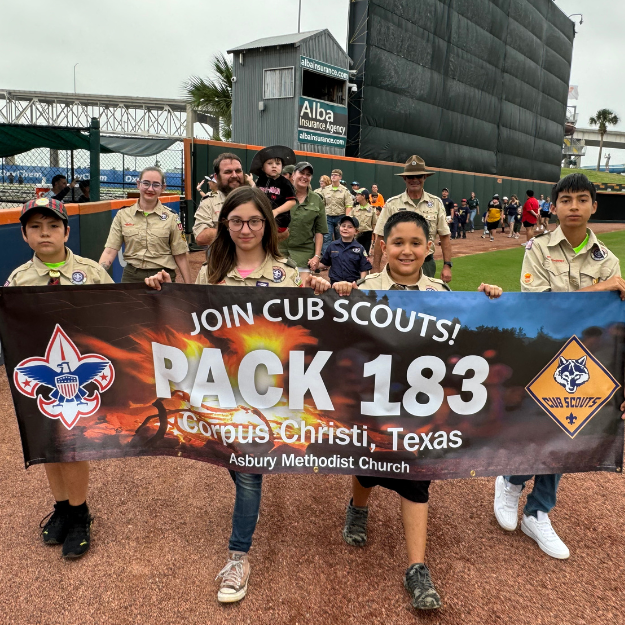 Scouts enjoyed an amazing evening at this year’s Scouting with the Hooks event! The youth did a great job of representing Scouting in South Texas as they walked around the stadium to the cheers of fans. After the game, Scouts went down to the field to watch a movie and camp overnight on the stadium grass.